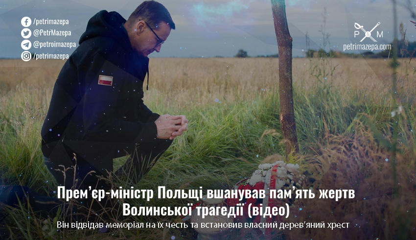 Прем’єр-міністр Польщі Матеуш Моравецький сьогодні вшанував пам’ять жертв Волинської трагедії на заході України — він побував на кількох меморіалах пам’яті загиблих і встановив у полі дерев’яний хрест поблизу нині не існуючого села Острівки.