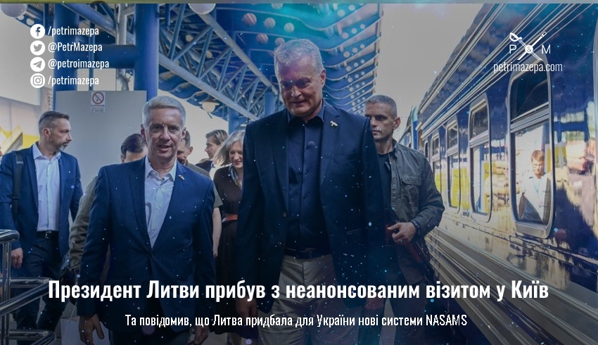 Президент Литви Гітанас Науседа 28 червня прибув із неанонсованим візитом у Київ. А також повідомив, що Литва придбала дві пускові установки NASAMS, які будуть передані Україні.
