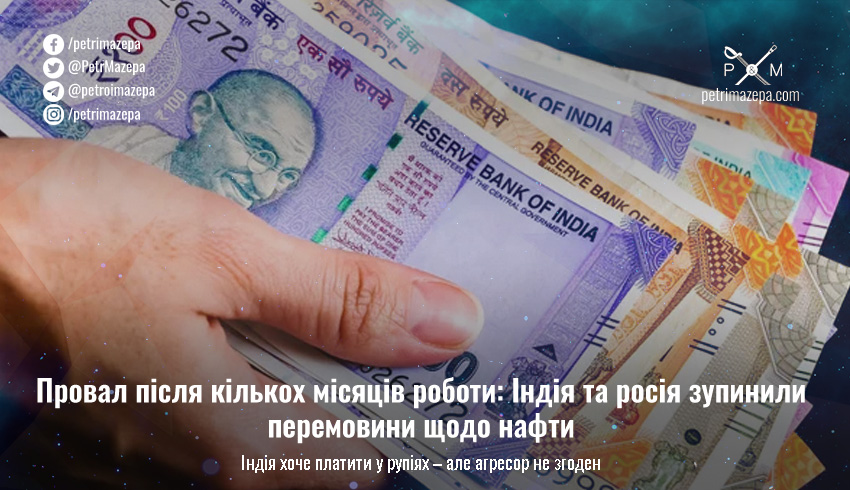 Індія та росія зупинили перемовини щодо двосторонньої угоди з оплати нафти. Перемовини тривали кілька місяців, але Москва так і не погодилася приймати оплату в рупіях.