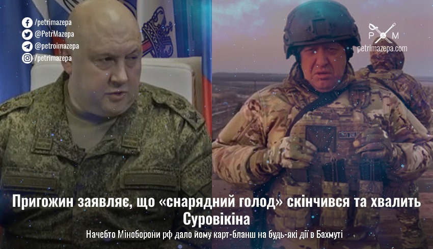 Пригожин заявляє, що «снарядний голод» скінчився та хвалить Суровікіна