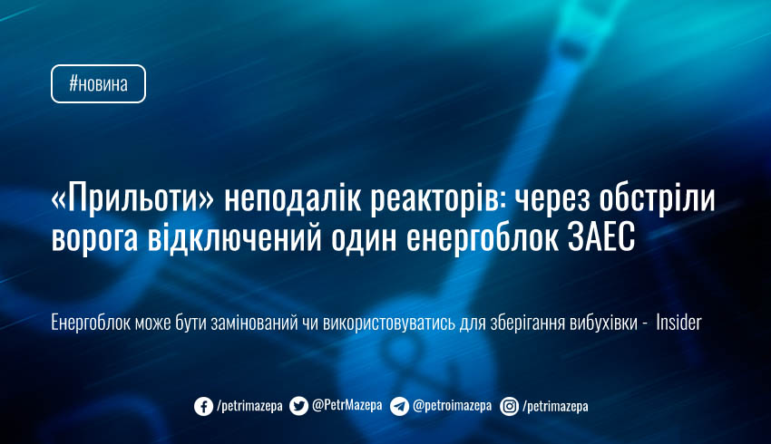 Сьогодні вранці Енергоатом повідомив, що через обстріли ворога на Запорізький АЕС був вимушено відключений один з енергоблоків — «прильоти» зафіксовані на майданчику неподалік від енергоблока. А за даними The Insider, енергоблок взагалі може бути замінований.