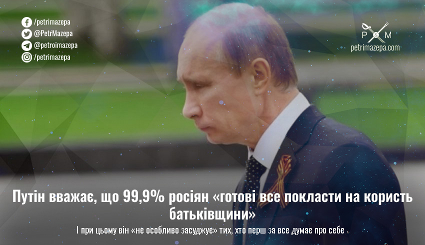 Путін вважає, що 99,9% росіян «готові все покласти на користь батьківщини»