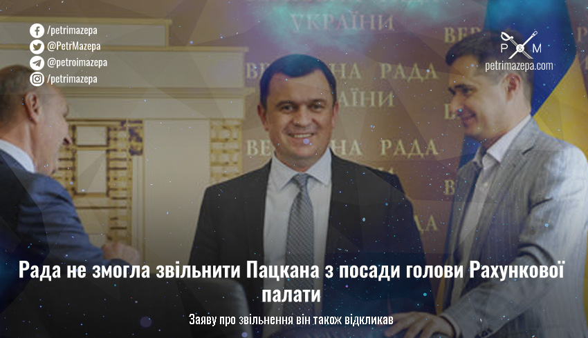 Голову Рахункової палати Валерія Пацкана не змогли звільнити з посади – про це повідомляє нардеп Ярослав Железняк.