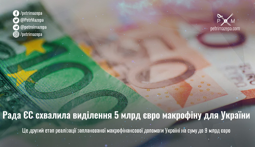 Рада Євросоюзу офіційно схвалила виділення Україні другого траншу макрофінансової допомоги Україні у розмірі 5 млрд євро «в терміновому порядку».