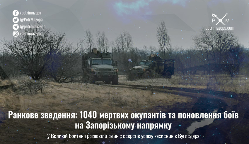 Ранкове зведення: 1040 мертвих окупантів та поновлення боїв на Запорізькому напрямку