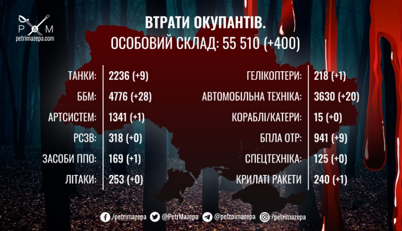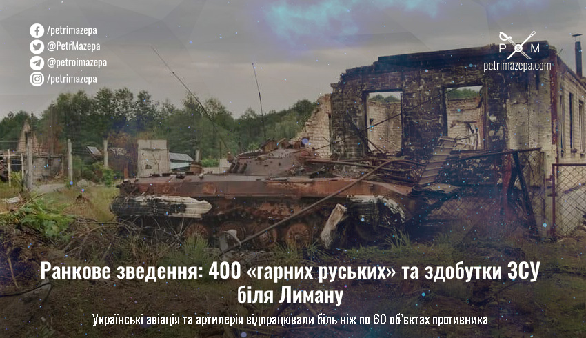 Ранкове зведення: 400 «гарних руських» та здобутки ЗСУ біля Лиману