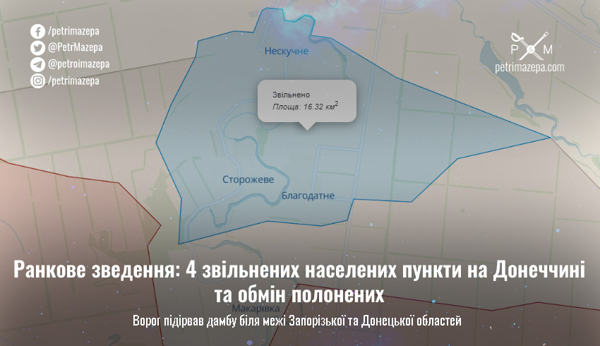 Ранкове зведення: 4 звільнених населених пункти на Донеччині та обмін полонених