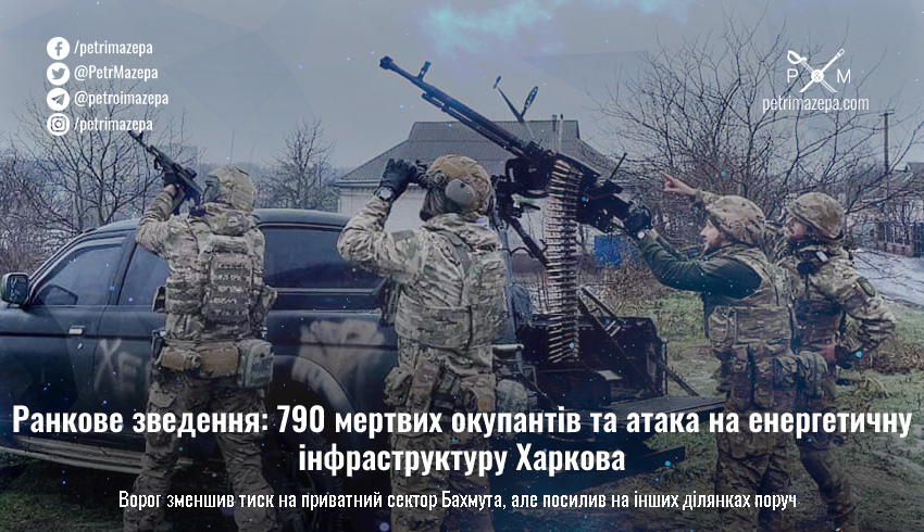 Ранкове зведення: 790 мертвих окупантів та атака на енергетичну інфраструктуру Харкова