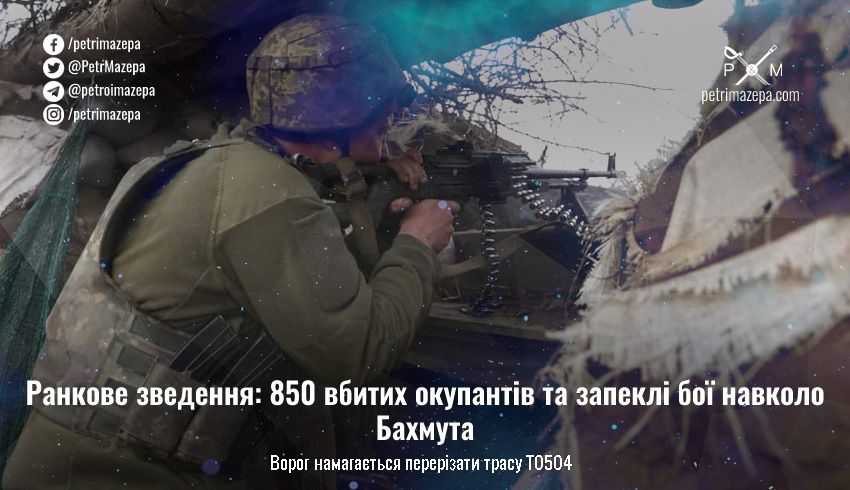 Ранкове зведення: 850 вбитих окупантів та запеклі бої навколо Бахмута