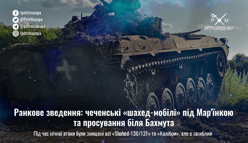 Ранкове зведення: чеченські «шахед-мобілі» під Мар'їнкою та просування біля Бахмута