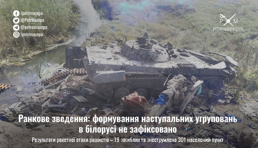 Ранкове зведення: формування наступальних угруповань в білорусі не зафіксовано