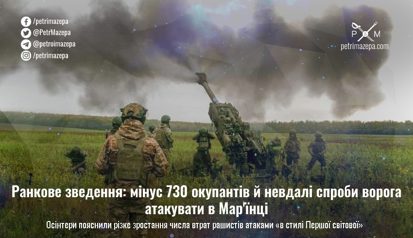 Ранкове зведення: мінус 730 окупантів й невдалі спроби ворога атакувати в Мар'їнці