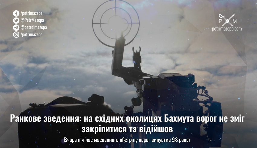 Ранкове зведення: на східних околицях Бахмута ворог не зміг закріпитися та відійшов