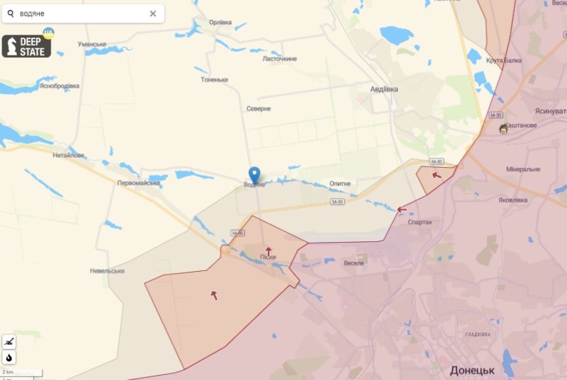 Як повідомляє DeepState, стає більш очевидне просування на схід лінії фронту на Сватівському напрямку. Але ворог не полишає спроб атакувати Терни та Торське. А на Авдіївському напрямку у ворога є певні успіхи у районі Первомайського та Водяного, але точний масштаб невідомий.
