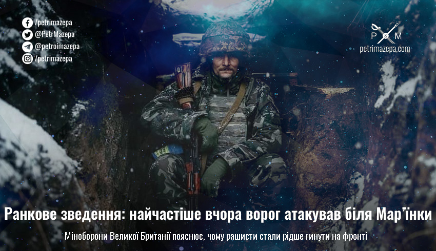 Ранкове зведення: найчастіше вчора ворог атакував біля Мар’їнки