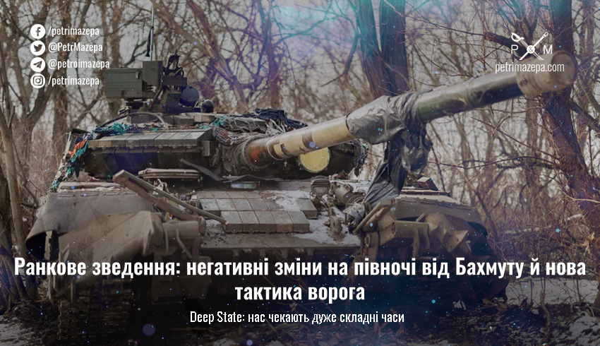 Ранкове зведення: негативні зміни на півночі від Бахмуту й нова тактика ворога