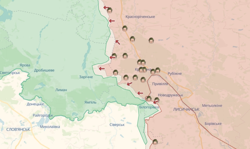 Ворог атакує й на Луганщині, під Білогорівкою, Червонопопівкою та Кремінною. За даними Deep State, наступ йде від Площанки та у лісах Кремінної.