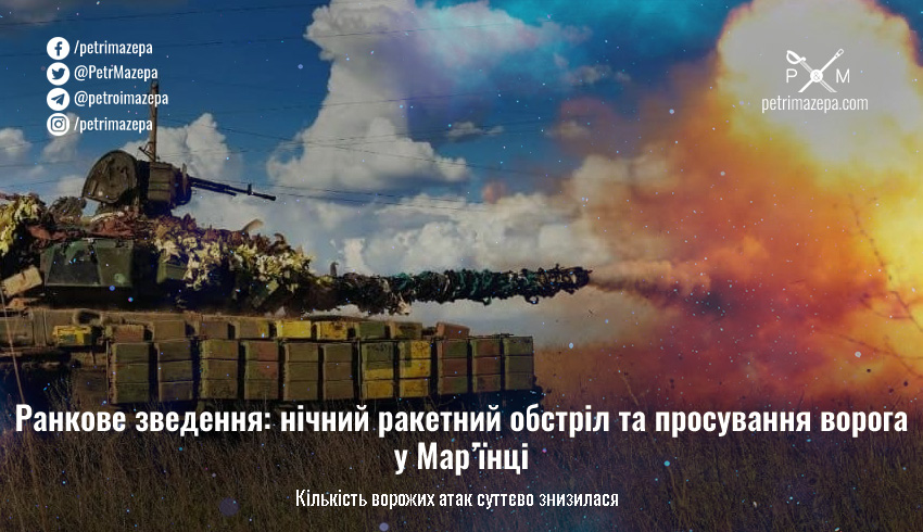 Ранкове зведення: нічний ракетний обстріл та просування ворога у Мар’їнці