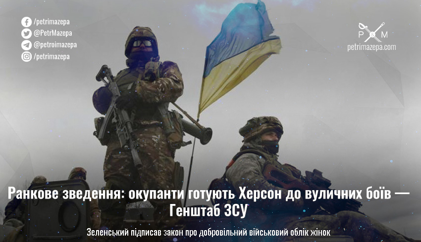 Ранкове зведення: окупанти готують Херсон до вуличних боїв — Генштаб ЗСУ