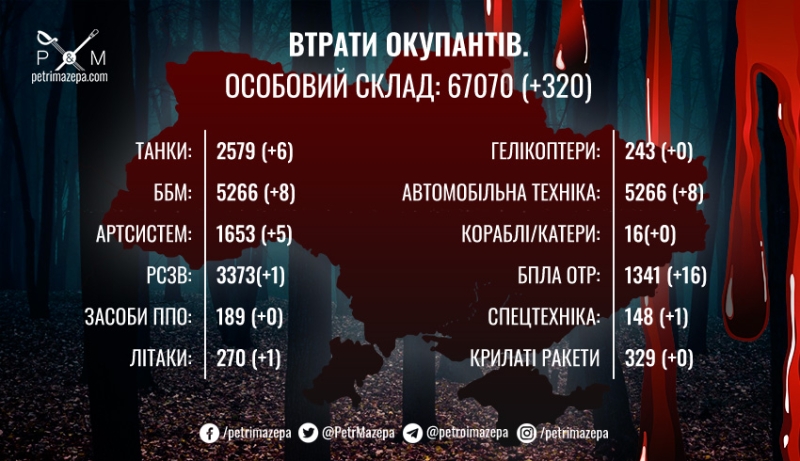 Загальні бойові втрати противника з 24.02 до 22.10 орієнтовно складають: