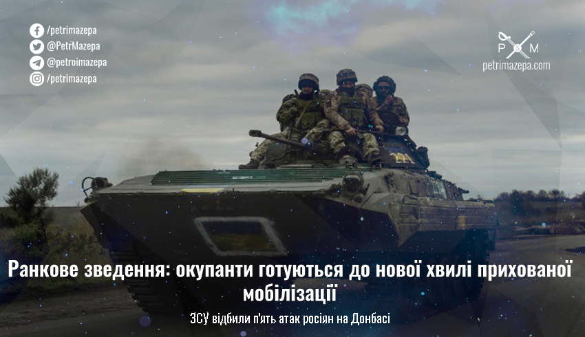 Українські військові відбили п’ять атак росіян на Донбасі, а окупанти тим часом готуються до нової хвилі прихованої мобілізації.