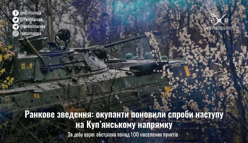 Ранкове зведення: окупанти поновили спроби наступу на Куп’янському напрямку
