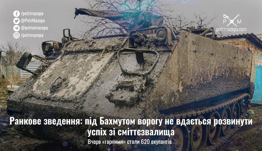 Ранкове зведення: під Бахмутом ворогу не вдається розвинути успіх зі сміттєзвалища