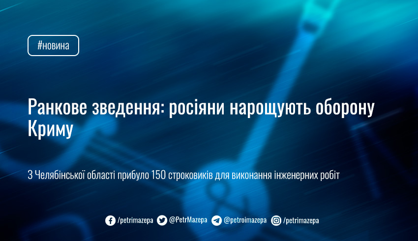 Окупанти нарощують оборону Криму, зокрема будують фортифікаційні споруди. З Челябінської області прибуло 150 строковиків для виконання інженерних робіт.