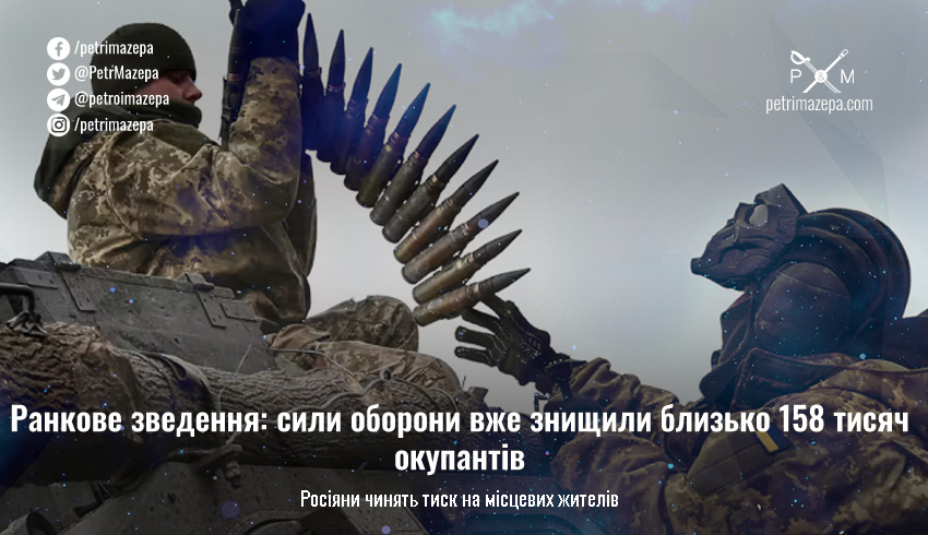 Ранкове зведення: сили оборони вже знищили близько 158 тисяч окупантів