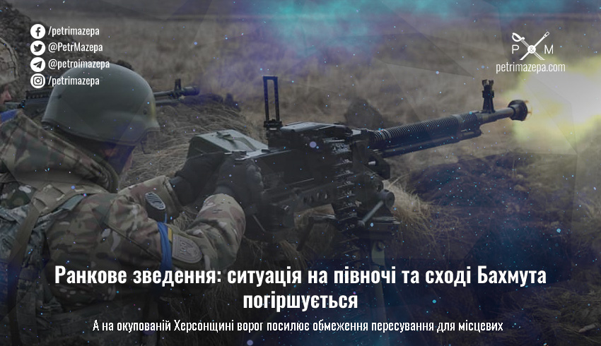 Ранкове зведення: ситуація на півночі та сході Бахмута погіршується