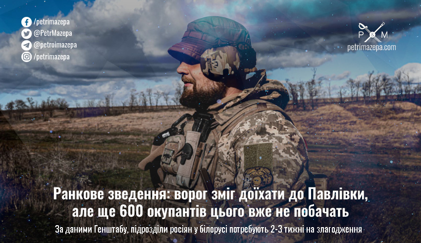 Ранкове зведення: ворог зміг доїхати до Павлівки, але ще 600 окупантів цього вже не побачать