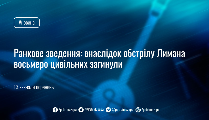 Ранкове зведення: внаслідок обстрілу Лимана восьмеро цивільних загинули