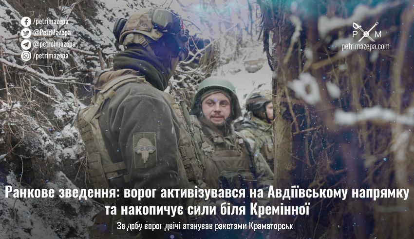 Ранкове зведення: ворог активізувався на Авдіївському напрямку та накопичує сили біля Кремінної