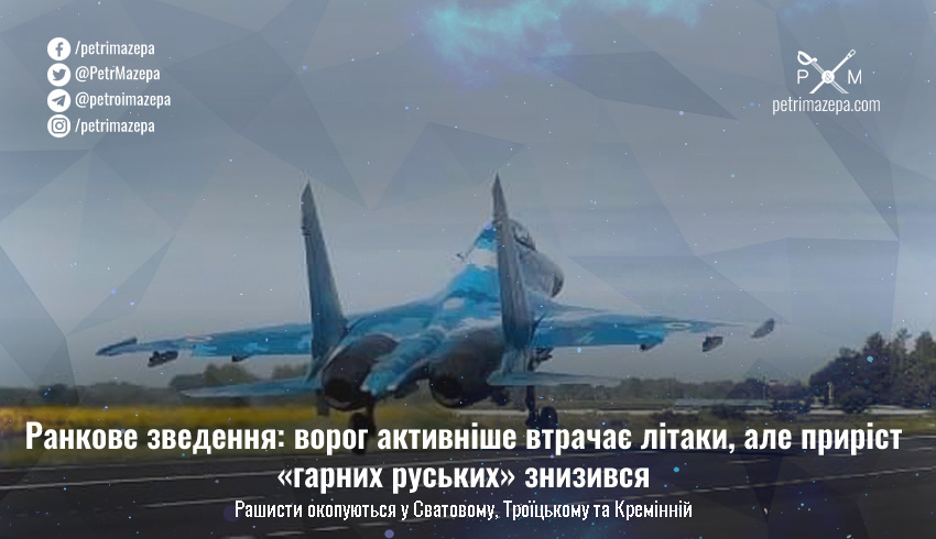 Ранкове зведення: ворог активніше втрачає літаки, але приріст «гарних руських» знизився