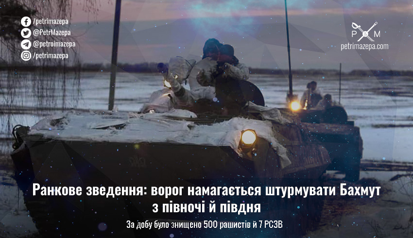 Ранкове зведення: ворог намагається штурмувати Бахмут з півночі й півдня