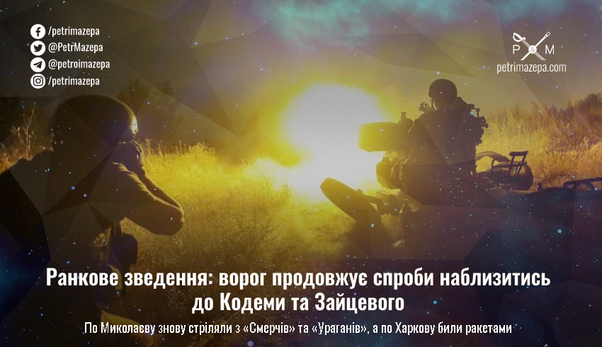 Ранкове зведення: ворог продовжує спроби наблизитись до Кодеми та Зайцевого
