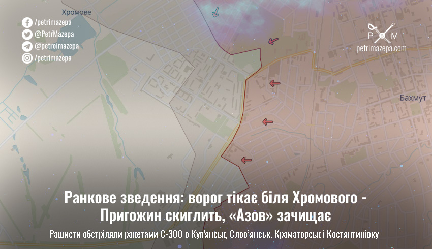Ранкове зведення: ворог тікає біля Хромового - Пригожин скиглить, «Азов» зачищає