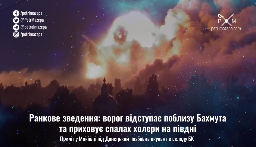 Ранкове зведення: ворог відступає поблизу Бахмута та приховує спалах холери на півдні