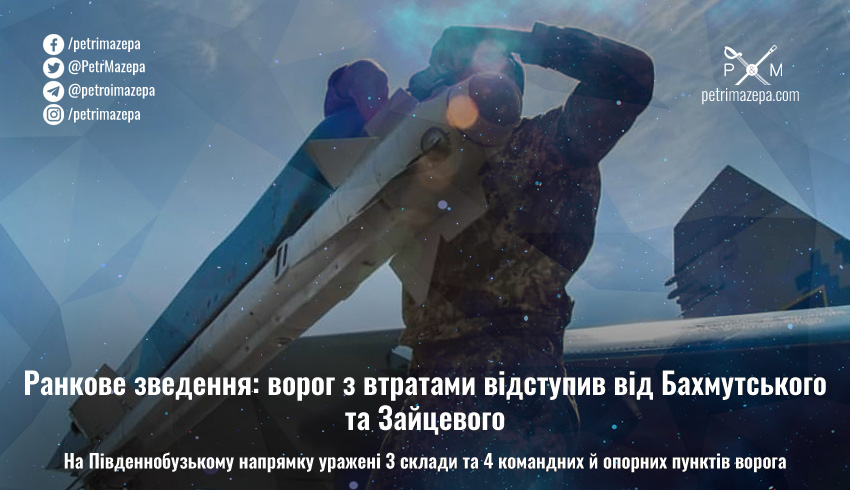 Ранкове зведення: ворог з втратами відступив від Бахмутського та Зайцевого