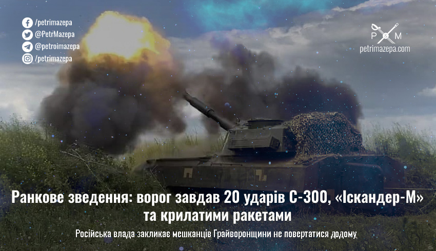 Ранкове зведення: ворог завдав 20 ударів С-300, «Іскандер-М» та крилатими ракетами