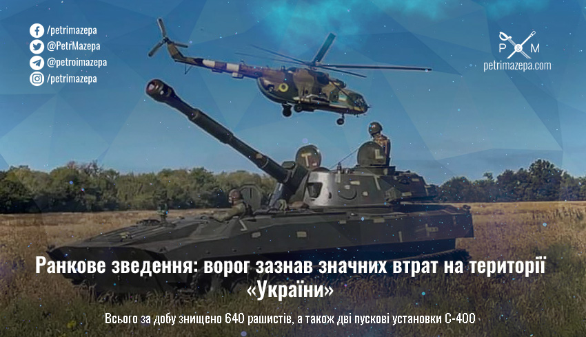 Ранкове зведення: ворог зазнав значних втрат на території «України»