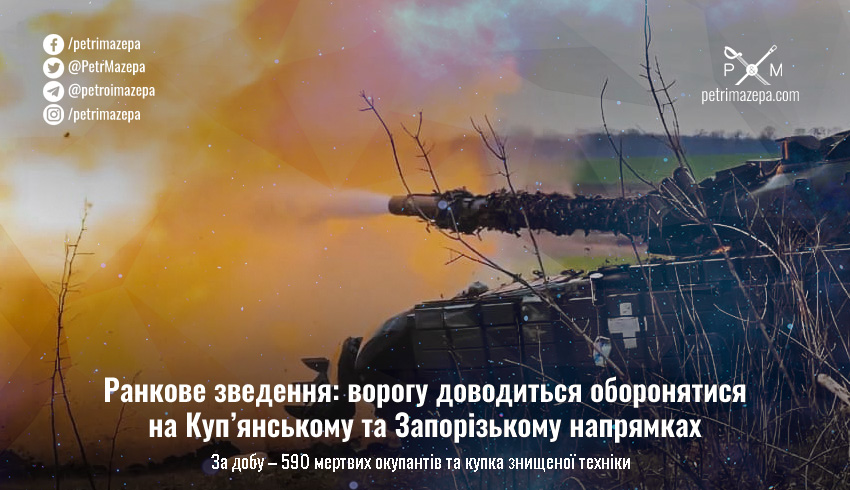Ранкове зведення: ворогу доводиться оборонятися на Куп’янському та Запорізькому напрямках