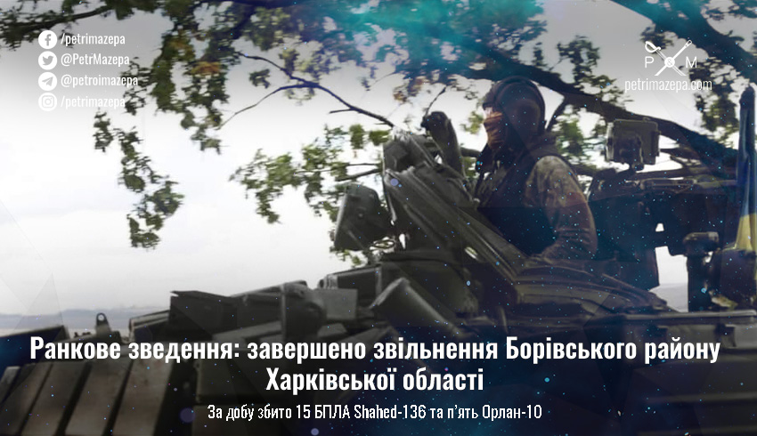 Ранкове зведення: завершено звільнення Борівського району Харківської області