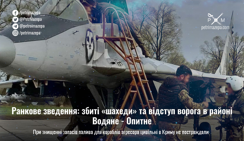 Ранкове зведення: збиті «шахеди» та відступ ворога в районі Водяне - Опитне