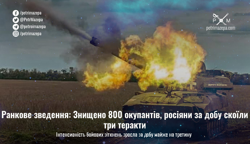 Ранкове зведення: Знищено 800 окупантів, росіяни за добу скоїли три теракти
