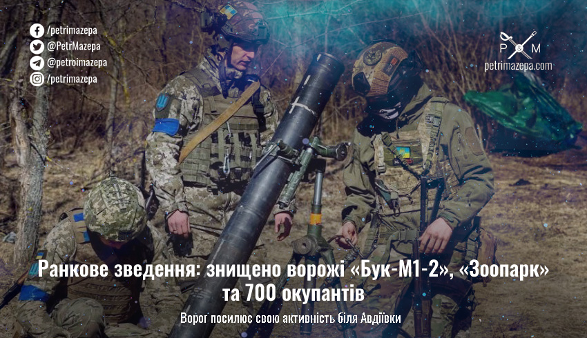 Ранкове зведення: знищено ворожі «Бук-М1-2», «Зоопарк» та 700 окупантів