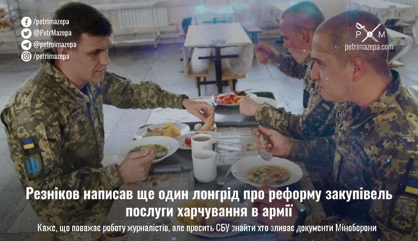 Резніков написав ще один лонгрід про реформу закупівель послуги харчування в армії