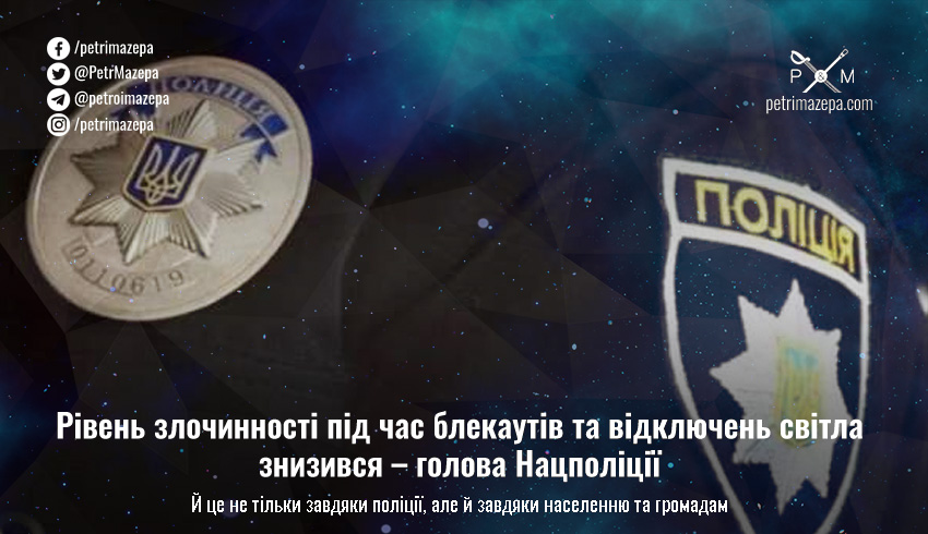 Голова Нацполіції повідомив, що під час відключень світла та блекаутів рівень злочинності навіть знизився, завдяки більшій кількості поліцейських на вулицях, взаємодії з населенням та громадами.