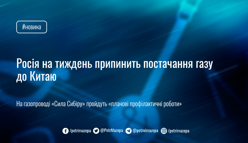 Росія з 22 по 29 вересня призупинить постачання газу до Китаю «Силою Сибіру».