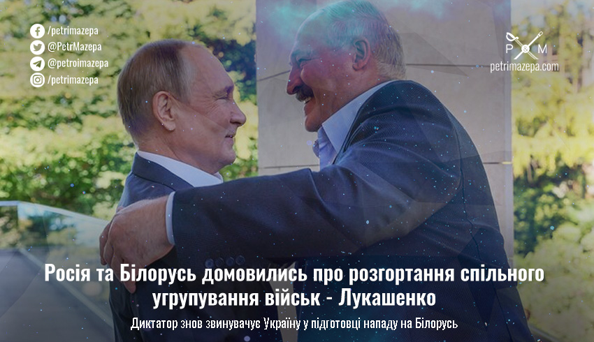 Олександр Лукашенко заявив, що він домовився з путіним про розгортання спільного регіонального угрупування, основу якого складе армія. Він знов звинувачує Україну у «підготовці нападу на Білорусь», та заявляє, що якщо рівень загрози «сягне нинішнього рівня», то угрупування буде залучене.